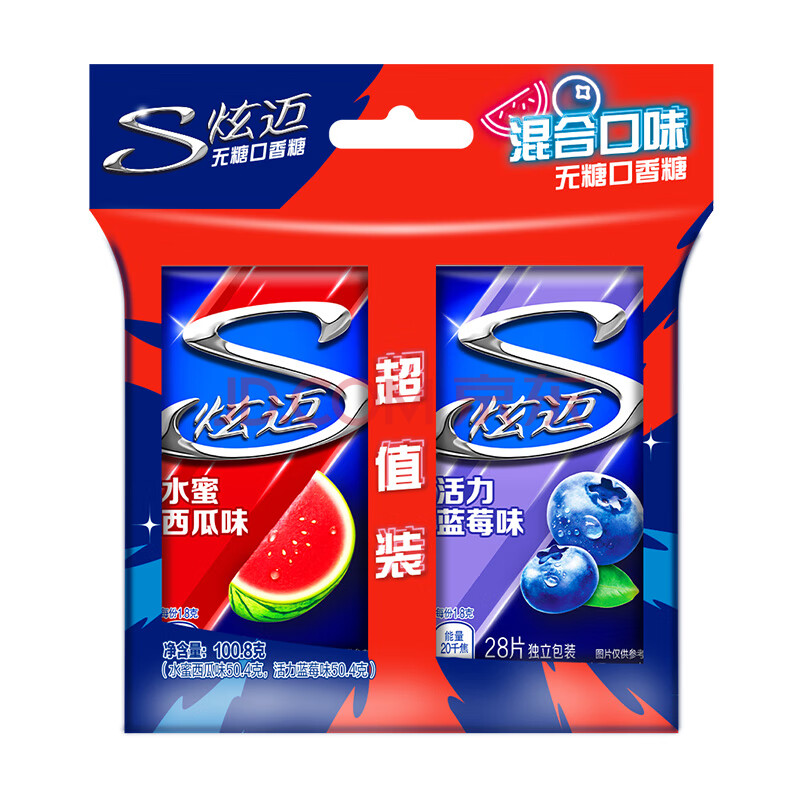 商品相册:炫迈 无糖口香糖 西瓜蓝莓味28片50.4g*2盒 糖果 零食 清新口气 提神第