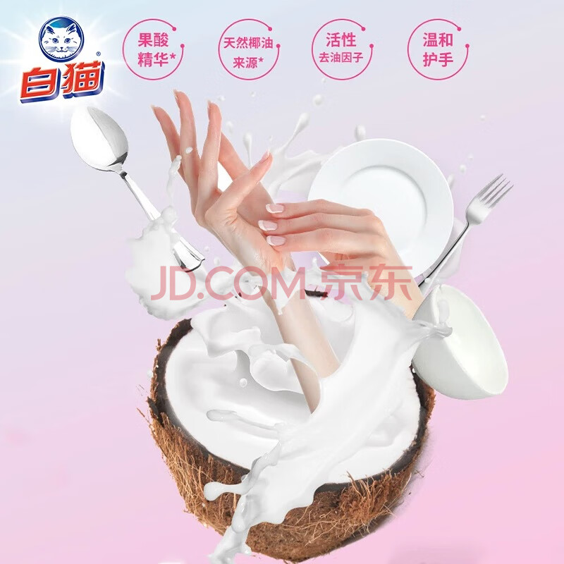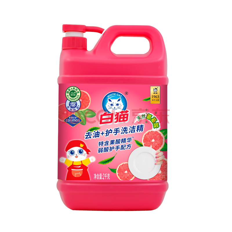 商品相册:白猫 去油+护手洗洁精2kg A类食品用温和去油快 洗洁精 洗涤灵 洗洁剂第