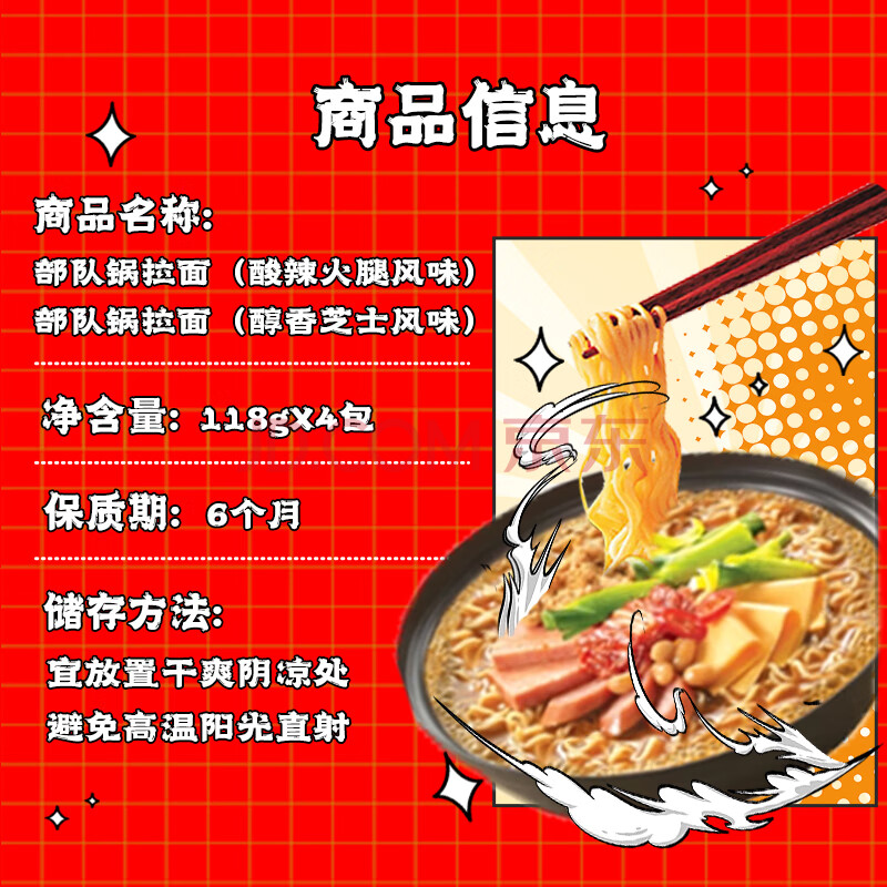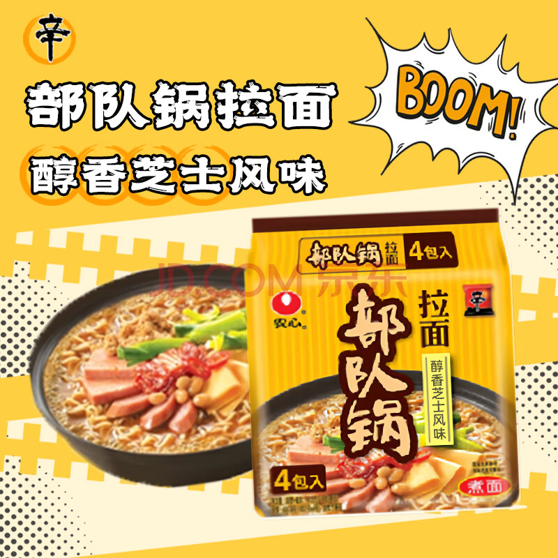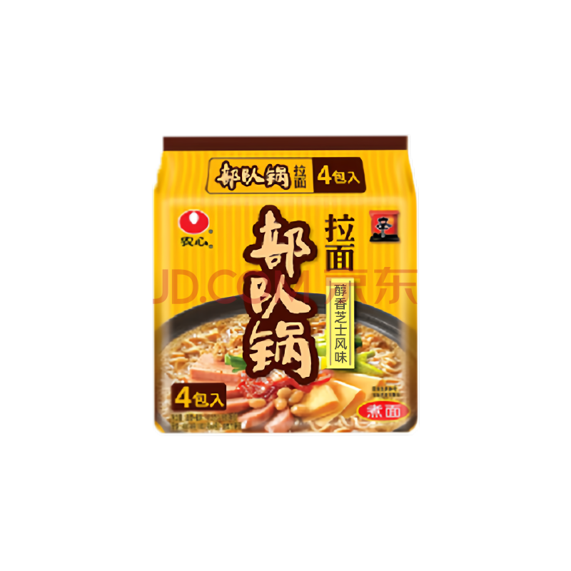 商品相册:农心 部队锅拉面 醇香芝士型方便面 袋面速食零食 四连包 118g*4包第