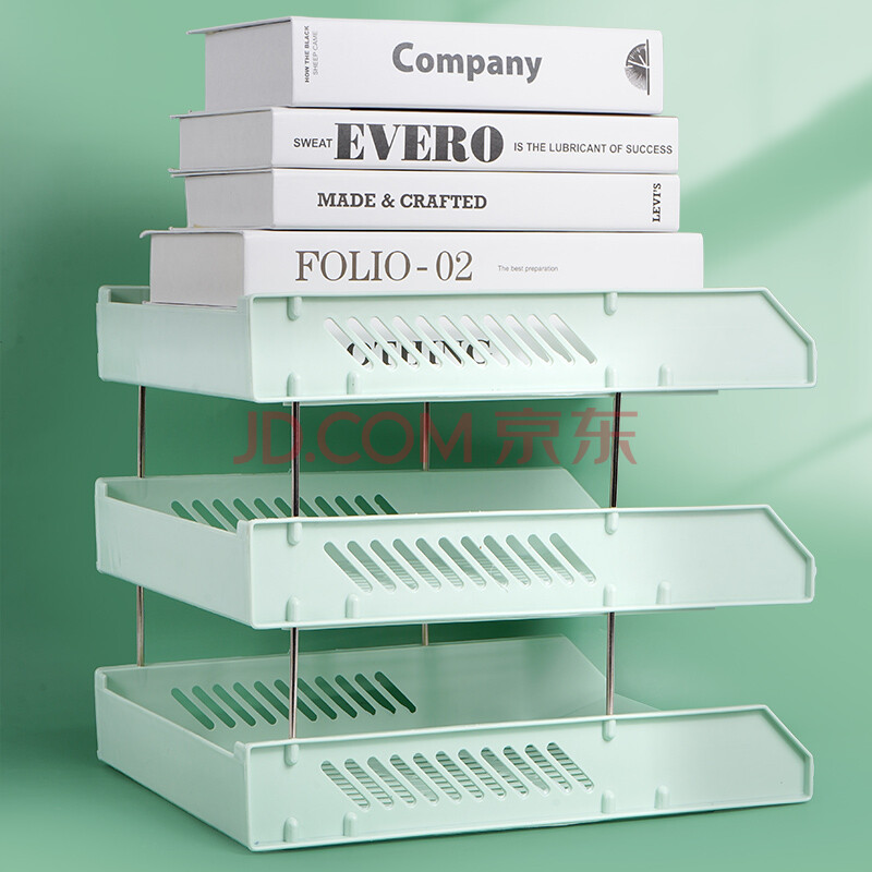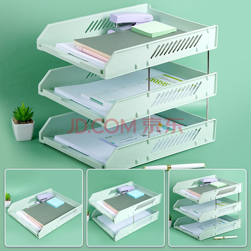 商品相册:西玛(SIMAA)莫兰迪三层镂空收纳文件座 自由拆卸组装三层文件盘/文件框/文件架 办公用品 抹茶绿6356第