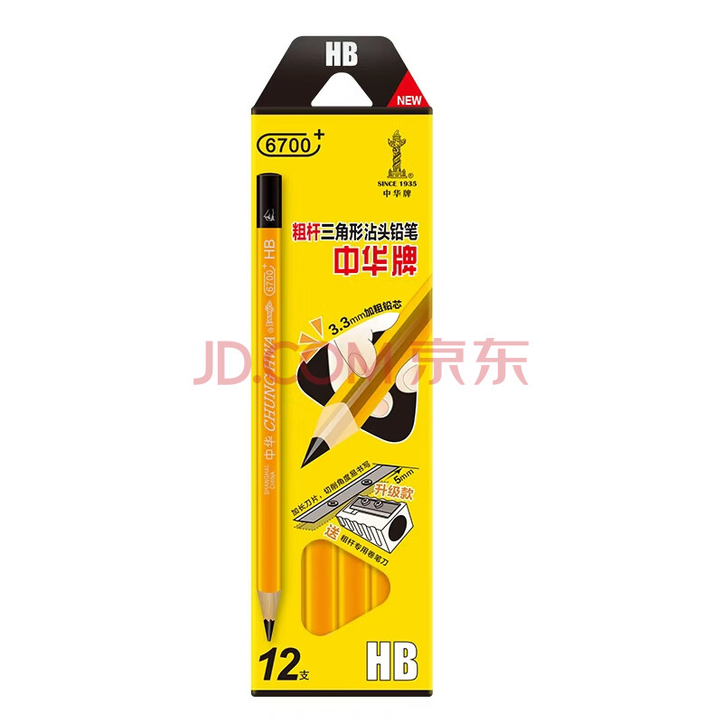 商品相册:中华【热门商品】中华6700 升级版 HB学生练字粗大三角铅笔加粗矫正握姿开学季礼物12支/盒 赠卷笔刀第