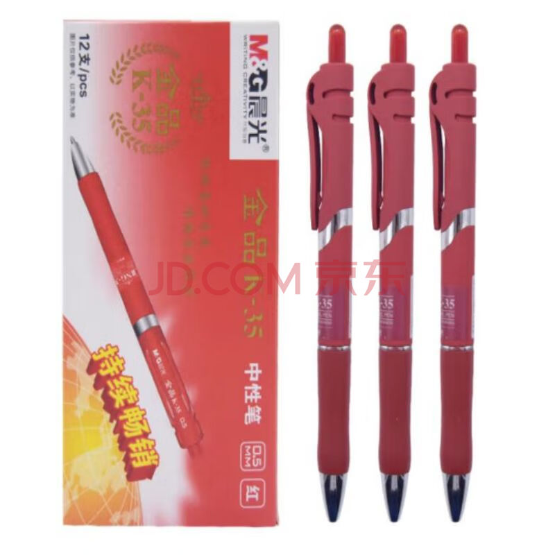 商品相册:晨光(M&G)AGPK3507按动中性笔按动笔 水笔 金品磨砂K35签字笔 0.5mm 红色 12支/1盒 1盒第