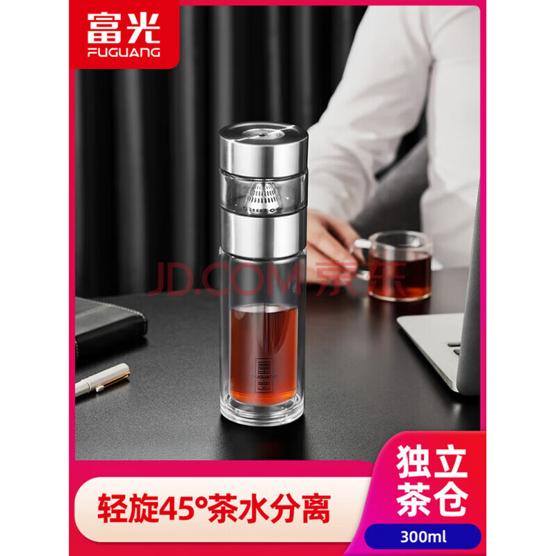 商品相册:富光善水提环泡茶师茶水分离玻璃杯G2046-sh-300 黑色第