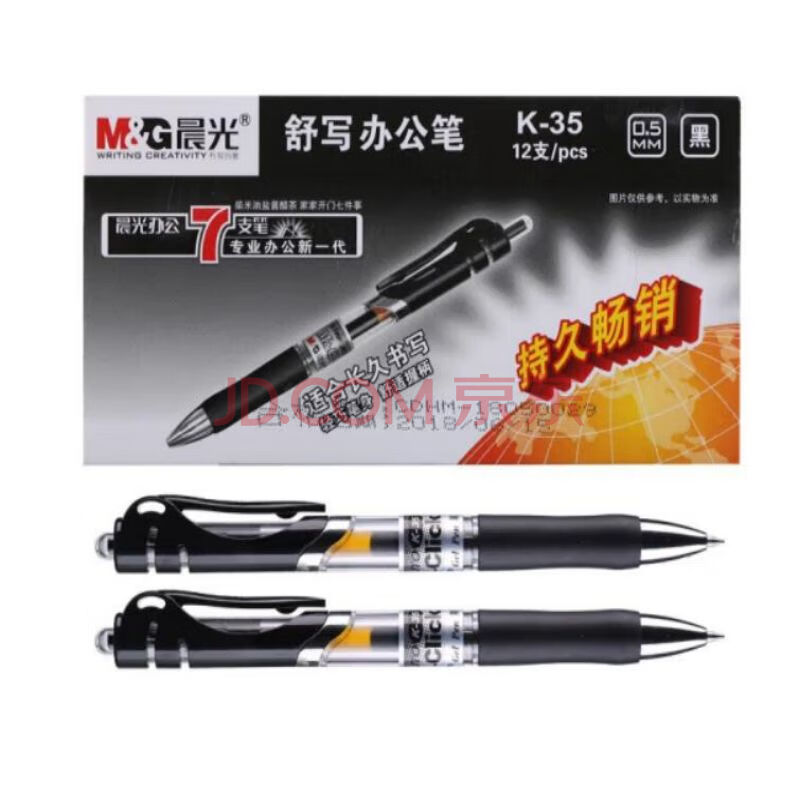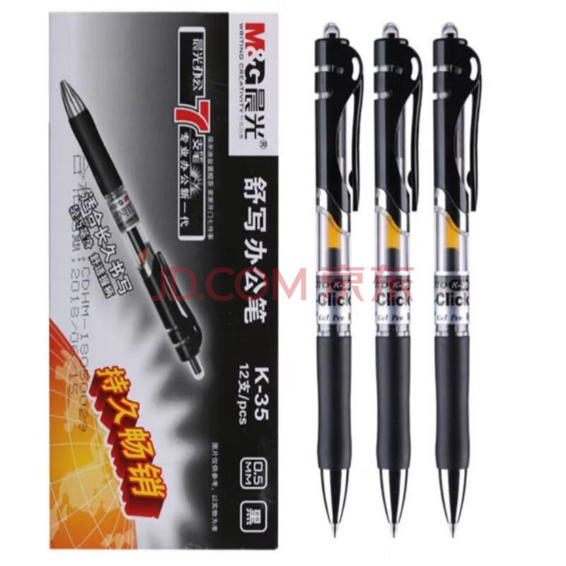 商品相册:晨光(M&G)文具K35黑色中性笔 按动笔 经典子弹头签字笔 办公用水笔0.5mm 12支/盒 1 盒第