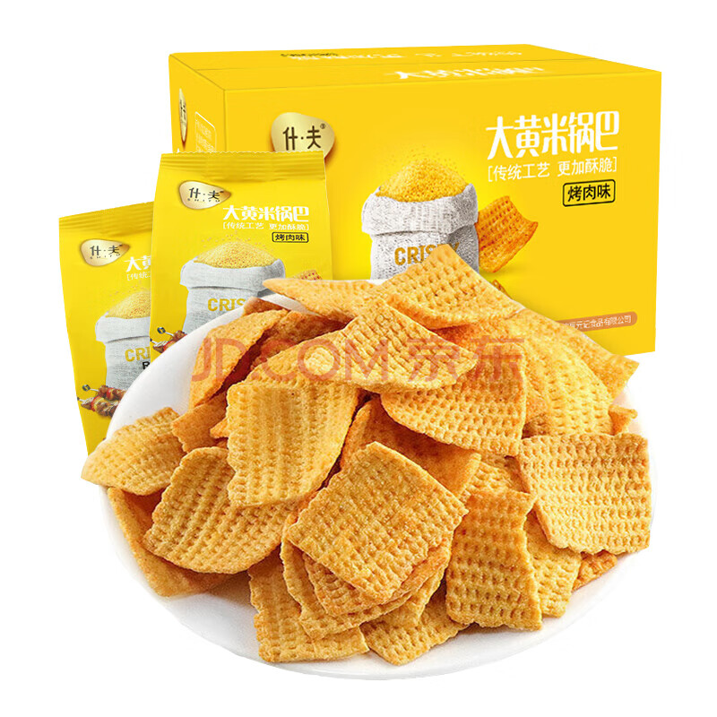 商品相册:什夫大黄米锅巴烤肉味208g(共5包)儿童零食小包装办公室休闲零食第