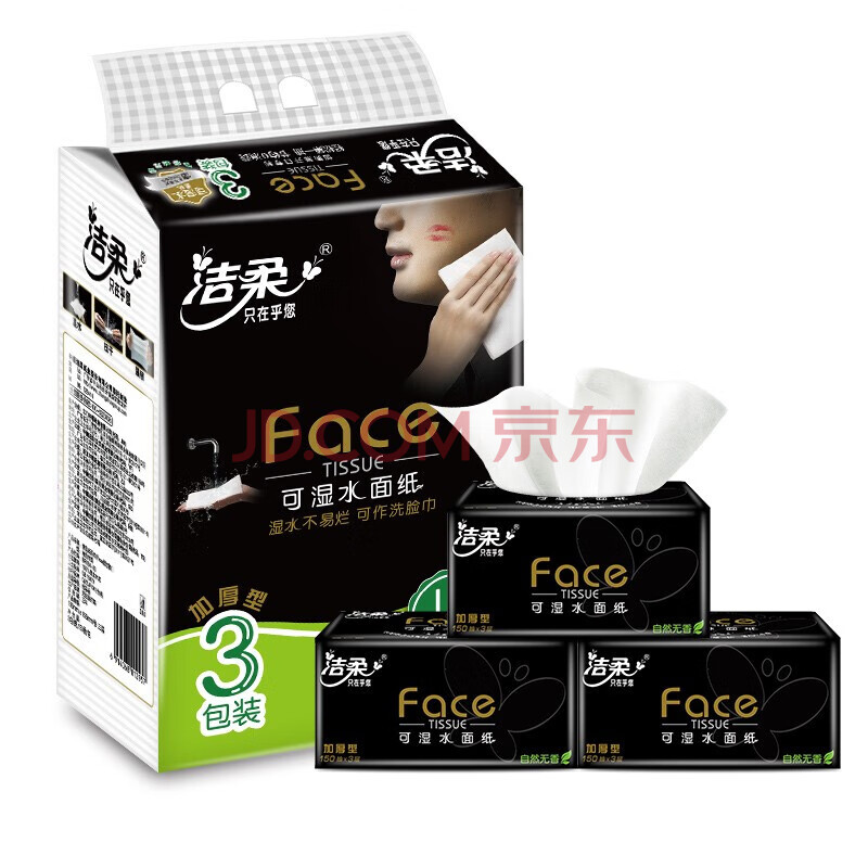 商品相册:洁柔 抽纸BR060-03自然无香 3层 150抽 3包/提*3提第