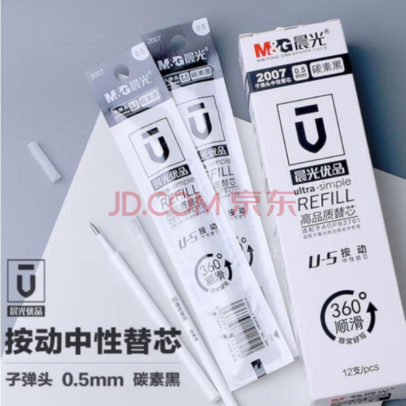商品相册:晨光(M&G)2007优品高品质按动笔芯U-5按动中性替芯0.5mm黑色子弹头按动替芯 黑色 12支/盒 一盒装第