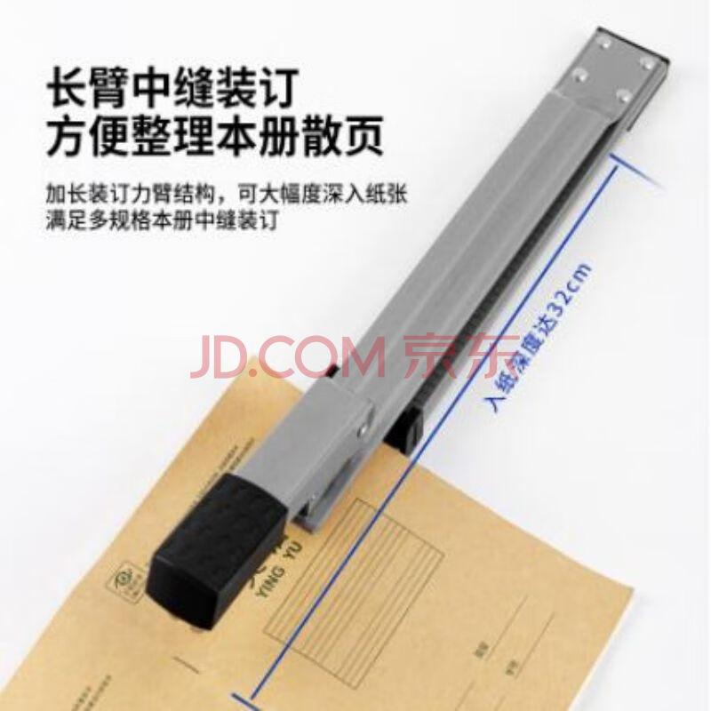 商品相册:得力(deli)0334长臂加长型省力办公装订订书机颜色随机 1个装第