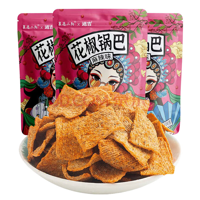 商品相册:襄遇二陽襄遇二阳花椒锅巴麻辣108g*3袋 休闲膨化大礼包零食小吃锅巴第