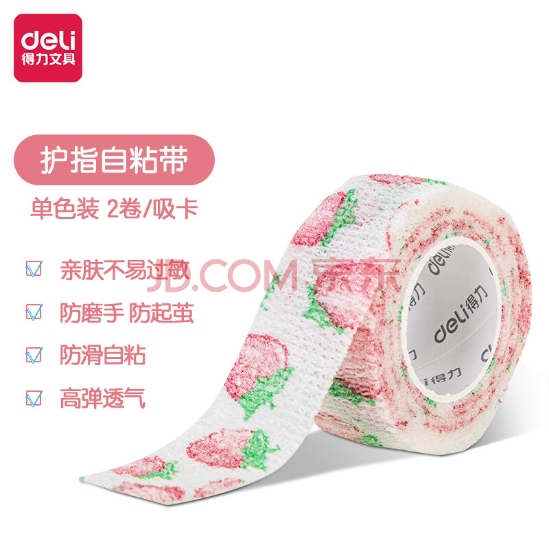 商品相册:得力(deli)2.5cm*4m护指自粘带 运动防损伤学生防老茧 易撕透气 30603 颜色随机发货 2卷/卡第
