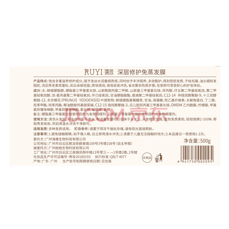 商品相册:儒意(RUYI)鱼子酱发膜500g修复干枯改善毛躁柔顺光泽护发素蛋白营养矫正头发第