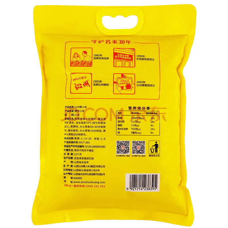商品相册:沁州 山西特产 沁州 五谷杂粮 黄小米 沁州黄小米袋装 2.5kg第