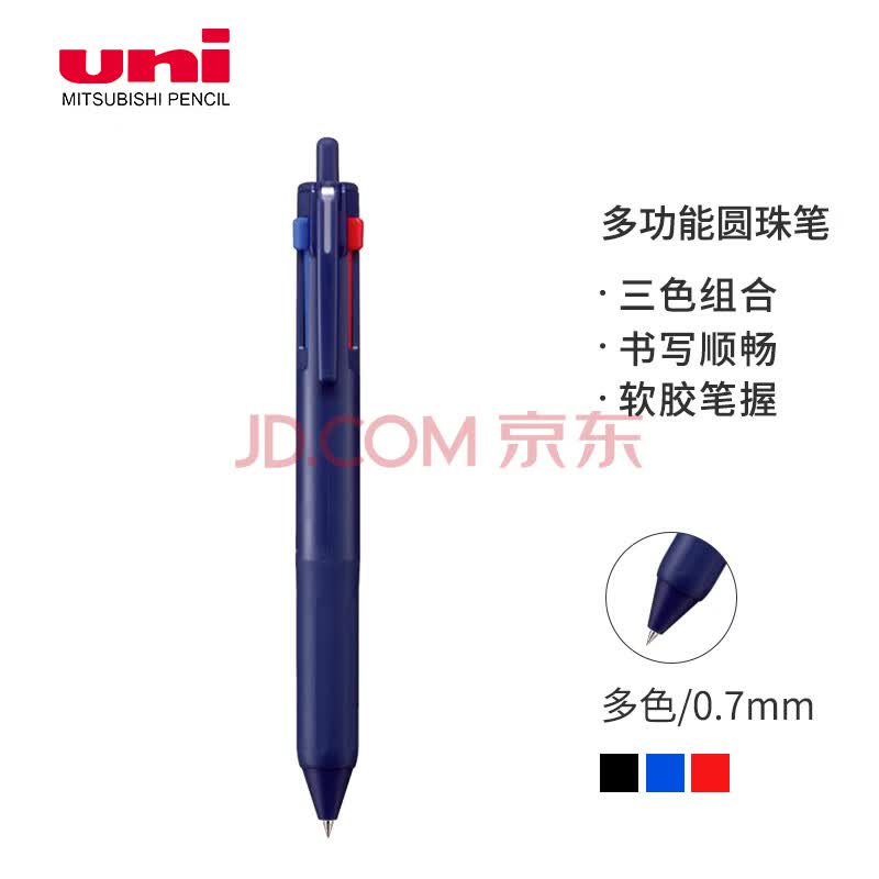 商品相册:uni三菱 三合一多功能圆珠笔 学生用中油笔商务办公用原子笔 SXE3-507-07 海军蓝 单支装第