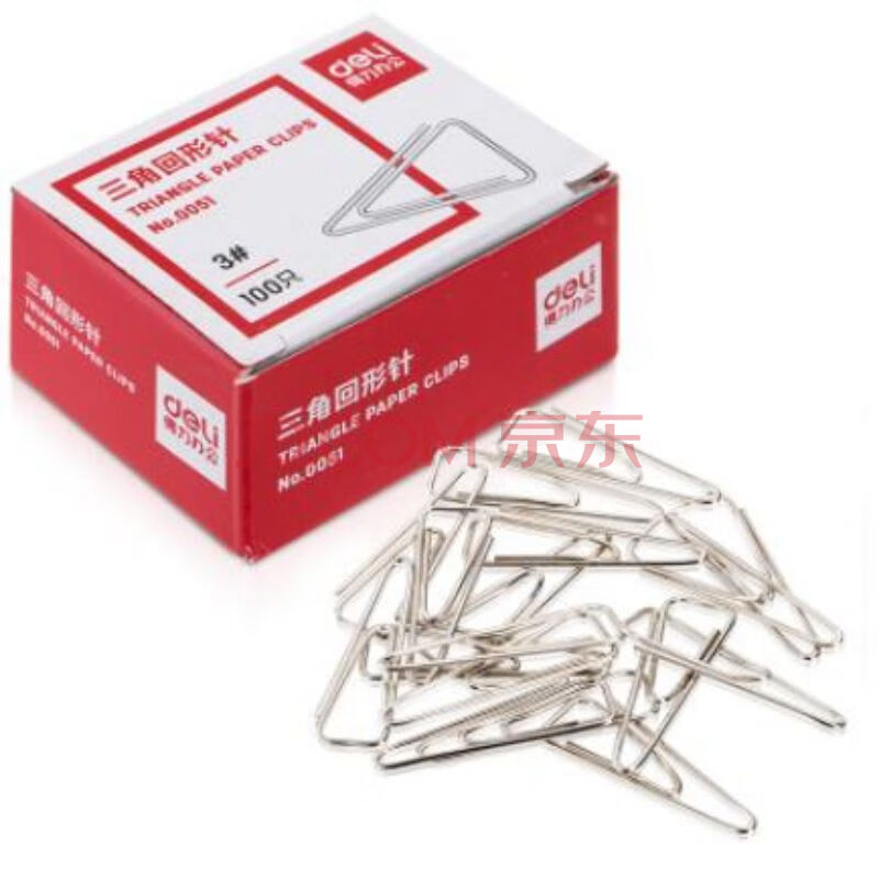 商品相册:得力(deli)0051回形针29MM全金属三角曲别针加厚不易生锈(100枚/盒)10盒装第