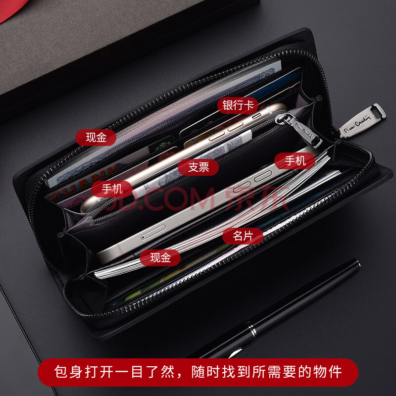 商品相册:皮尔卡丹男士手包长款牛皮钱包拉链手拿包礼盒送礼黑色第