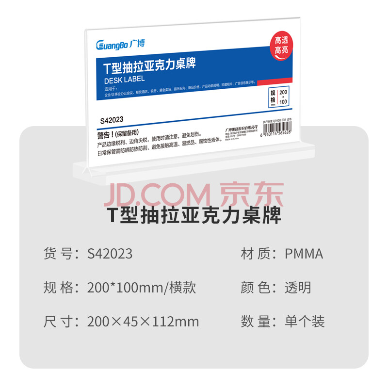 商品相册:广博(GuangBo)精致T型双面台签亚克力台牌 台卡会议展示牌桌牌立牌餐牌桌卡 200mm*100mm横款S42023第