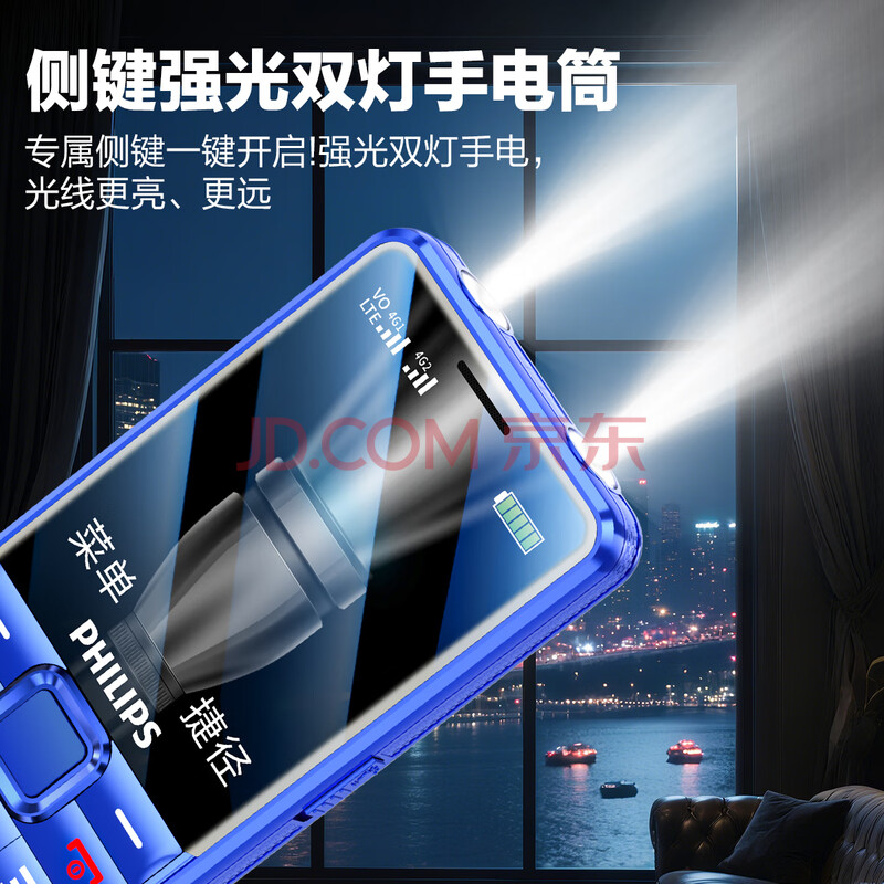 商品相册:飞利浦(PHILIPS)E528L 学生手机4G全网通小学初高中戒网瘾无游戏智能支付大字大声老年人手机超长待机老人机 蓝色第