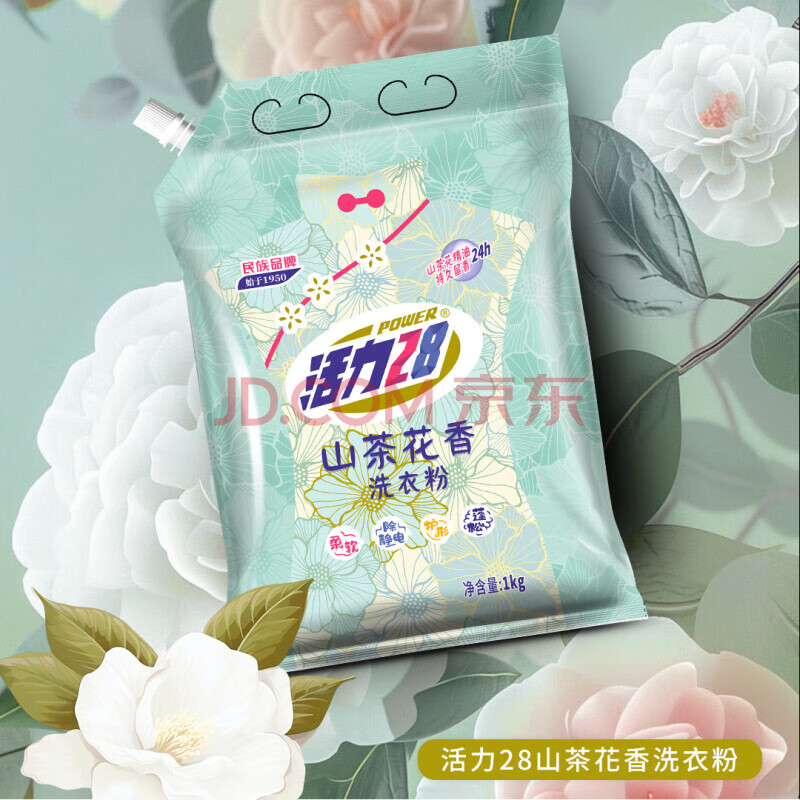 商品相册:活力28山茶花洗衣粉2斤 去渍持久留香家用机洗手洗不伤手易漂洗无磷1kg第