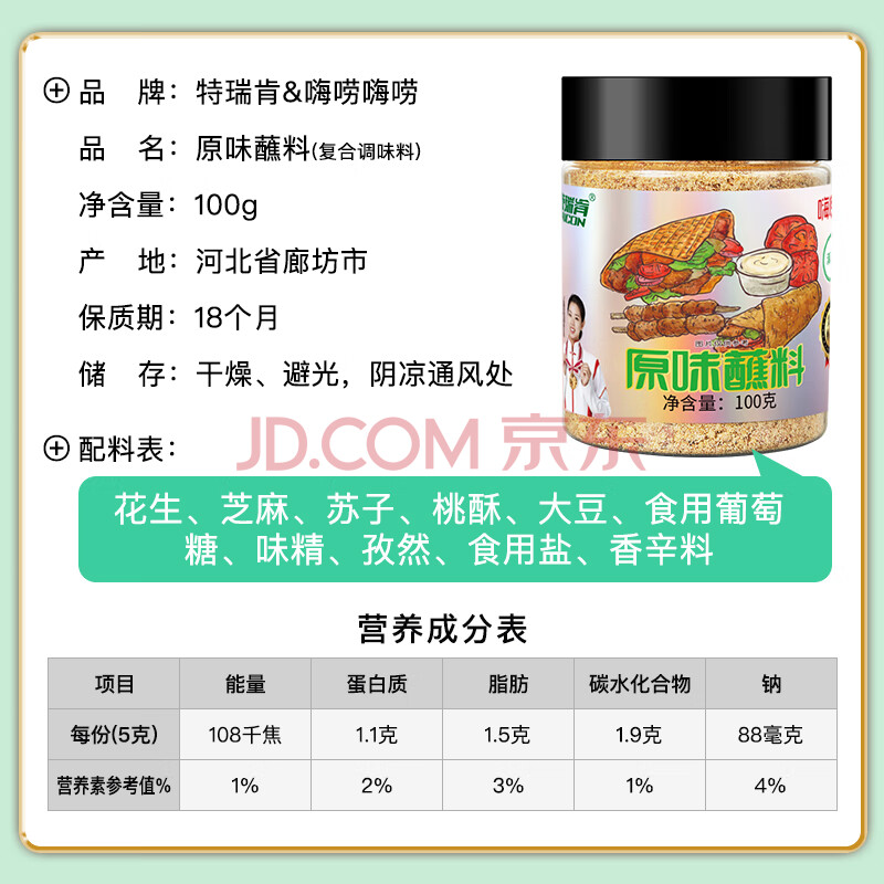 商品相册:特瑞肯(TRICON)烤肉蘸料干料烧烤撒料火锅底料原味零添加香辛料调味品100g送礼第