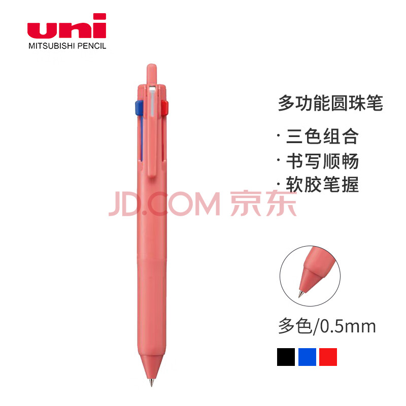 商品相册:uni三菱 三合一多功能圆珠笔 学生用中油笔商务办公用原子笔 SXE3-507-05 浆果粉 单支装第