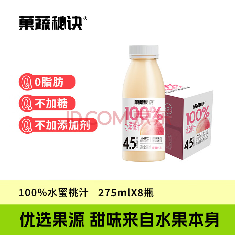 商品相册:乐源菓蔬秘诀100%水蜜桃果汁0脂肪0添加剂275ml*8瓶小瓶出游聚餐饮料第