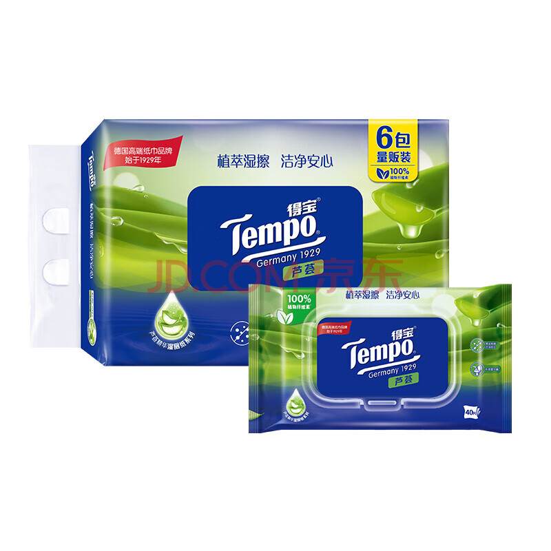 商品相册:得宝抽纸 芦荟40片便携装成人卫生洁肤湿纸巾*6第
