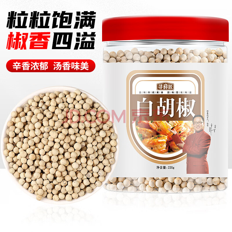 商品相册:寻鲜匠白胡椒粒220g 正宗纯白胡椒粒煲汤材料烧烤调味品 家用香辛料第