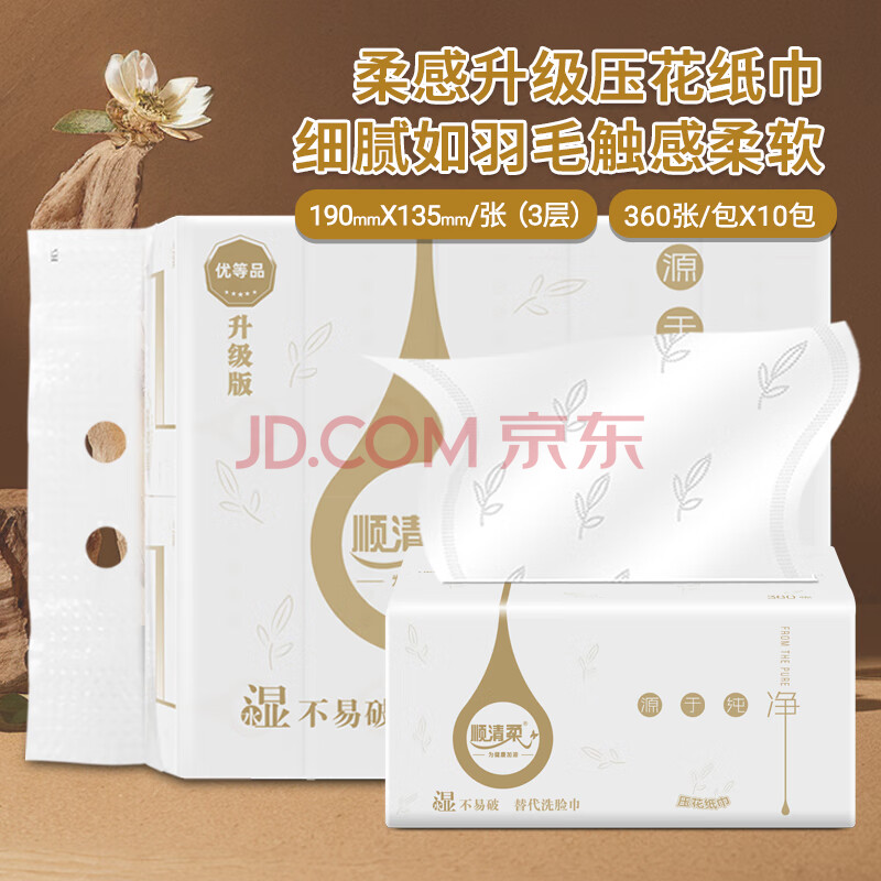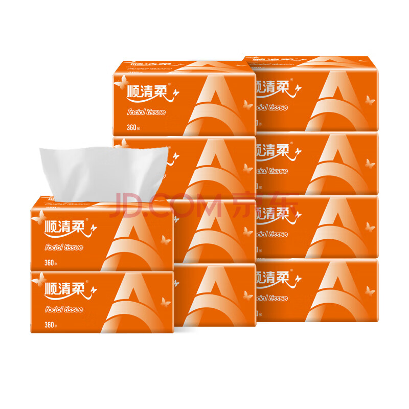 商品相册:顺清柔抽纸3层120抽*10包S码 纯净系列柔韧护肌肤抽取式面巾纸提装销售第