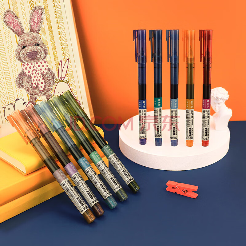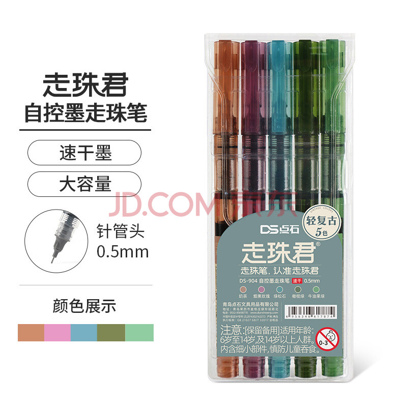 商品相册:点石彩色直液式中性笔0.5mm全针管学生签字笔水笔高颜值走珠笔练字开学季必备904走珠君轻复古色5支/盒第