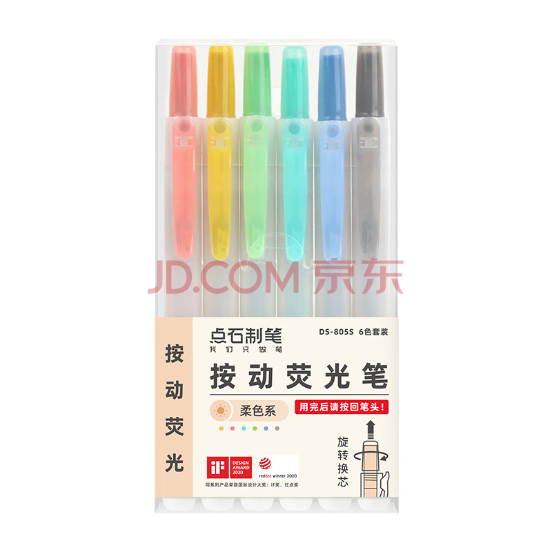 商品相册:点石按动荧光笔小清新简约透明柔色系彩色划重点记号笔淡彩色学生课堂标记笔开学季805柔色系套装/6支第