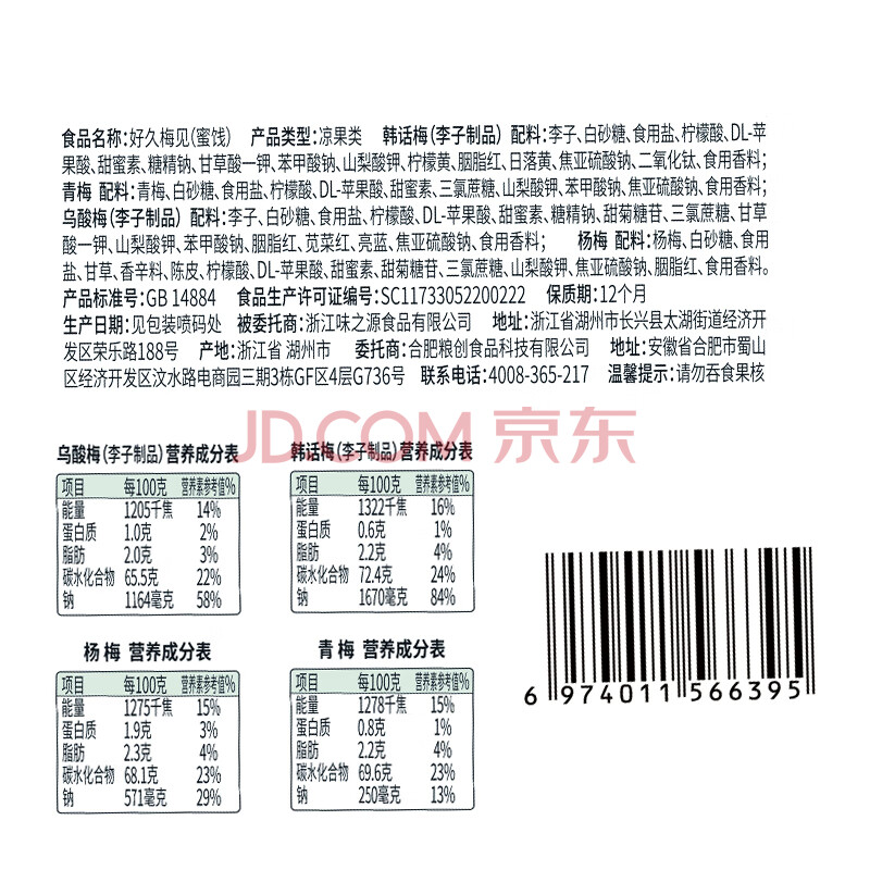商品相册:味滋源梅子桶320g青梅乌梅韩话梅杨梅蜜饯果干4种口味零食礼第