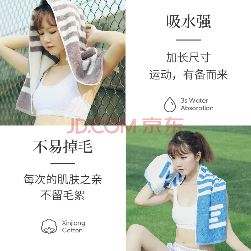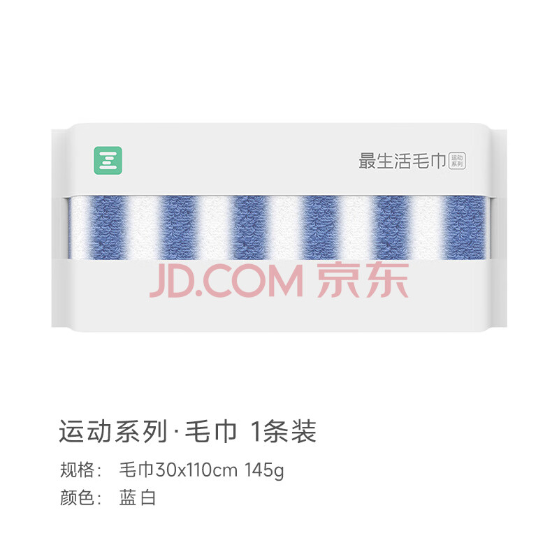 商品相册:最生活专业运动毛巾纯棉条纹 加长加大毛巾 健身房擦汗 蓝白第