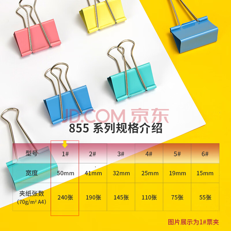 商品相册:得力(deli)长尾夹8551ES彩色50mm票夹金属燕尾夹票据夹子办公用品1#(整筒12个)第