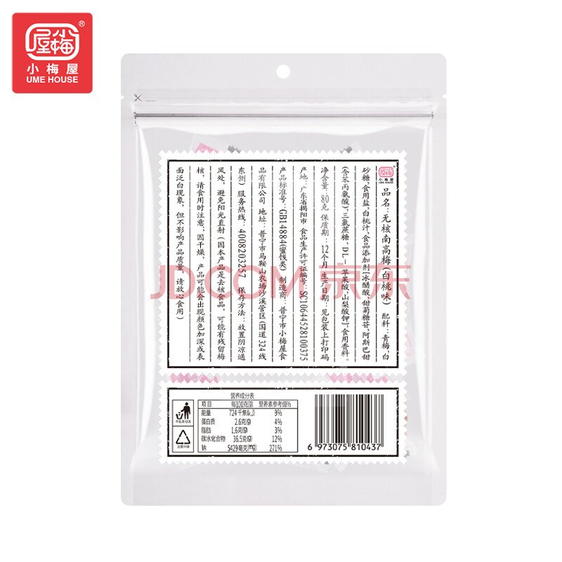 商品相册:小梅屋无核南高梅白桃味 蜜饯零食日式梅饼80g第