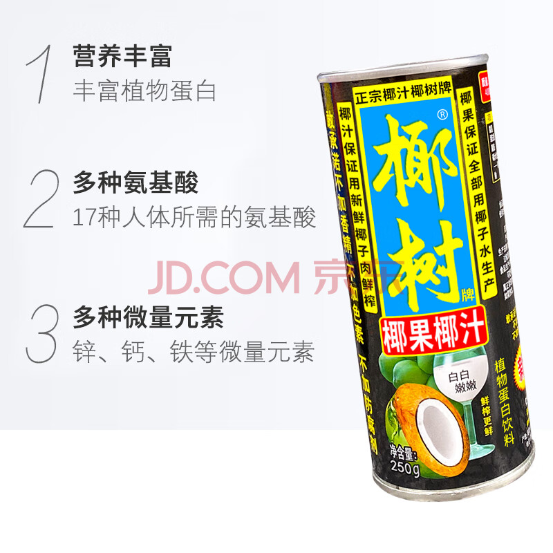 商品相册:椰树椰果椰汁 250g*24罐 整箱装 植物蛋白饮料 海南特产 年货送礼年货第