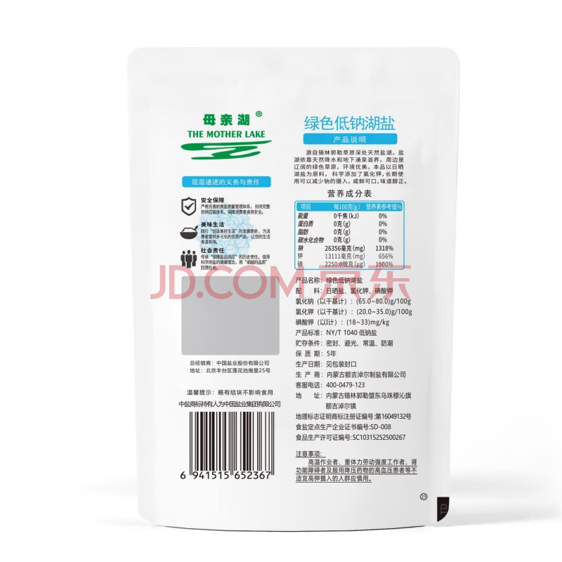 商品相册:中盐 绿色低钠湖盐280g 【加碘】绿色食品 地理标志认证第
