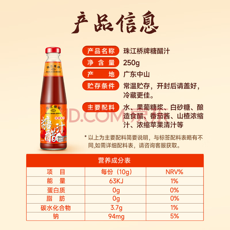 商品相册:珠江桥牌糖醋汁250g 糖醋排骨调料酱汁糖醋里脊酸甜调味料 中华老字号第