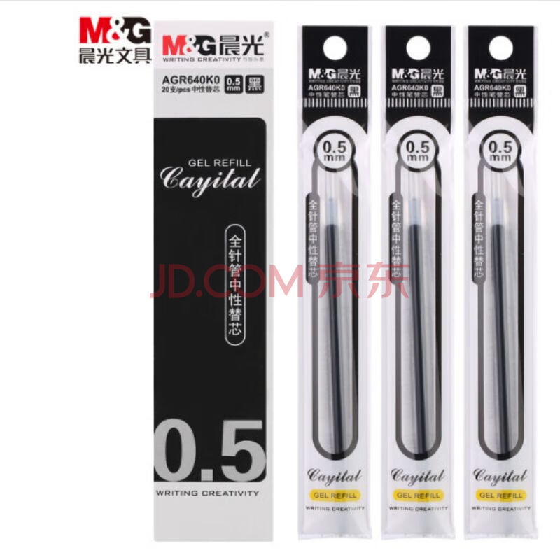 商品相册:晨光(M&G)文具0.5mmAGR640K0黑色中性笔芯 全针管签字笔替芯 学生/办公通用水笔芯 20支/盒 1盒装第