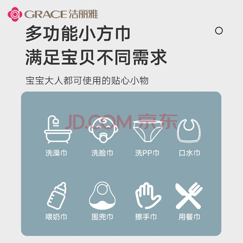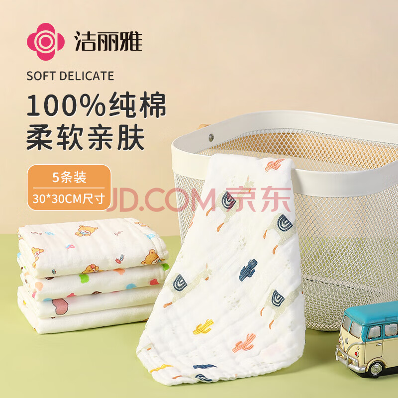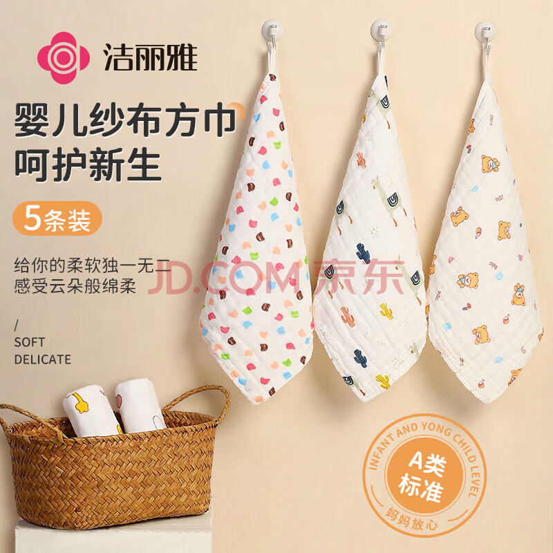 商品相册:洁丽雅(Grace)婴儿小毛巾A类 6层纱布口水巾儿童宝宝洗脸小方巾 5条装第