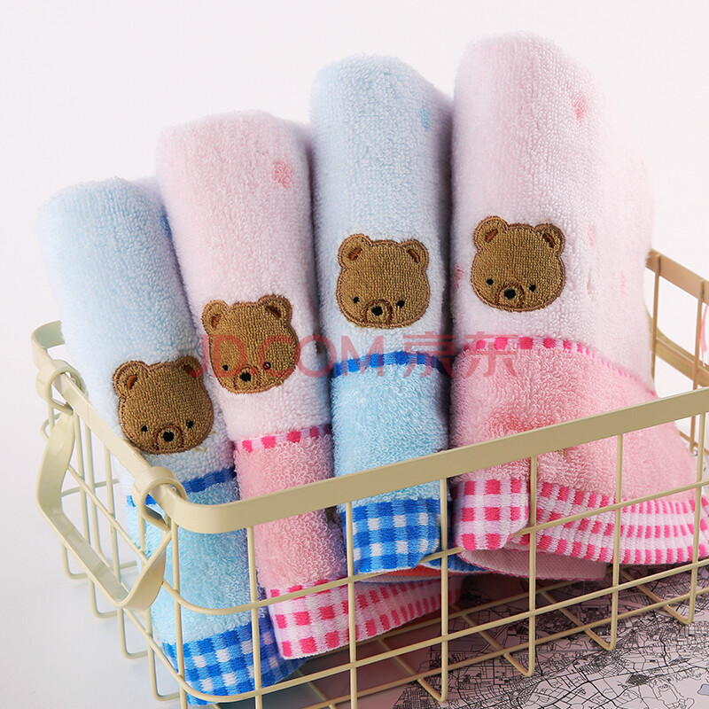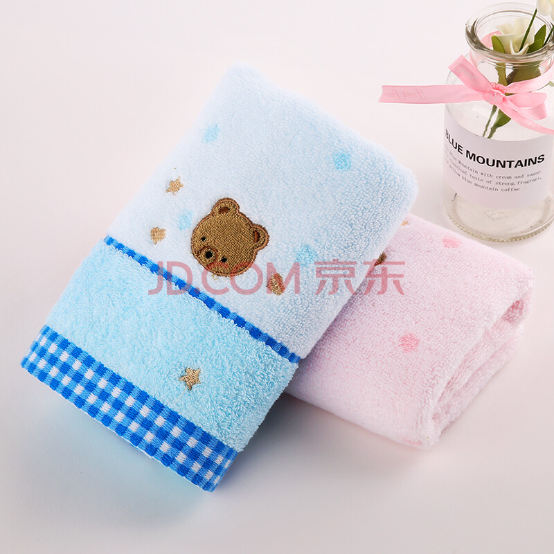 商品相册:金号纯棉无捻吸水方巾 小熊卡通款式 兰/粉 2条装 35*34cm 44g/条第