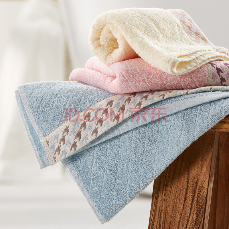 商品相册:洁丽雅(Grace)毛巾家纺 新疆棉千鸟格洗脸加厚吸水擦脸洁面巾 三条装 红/兰/米第