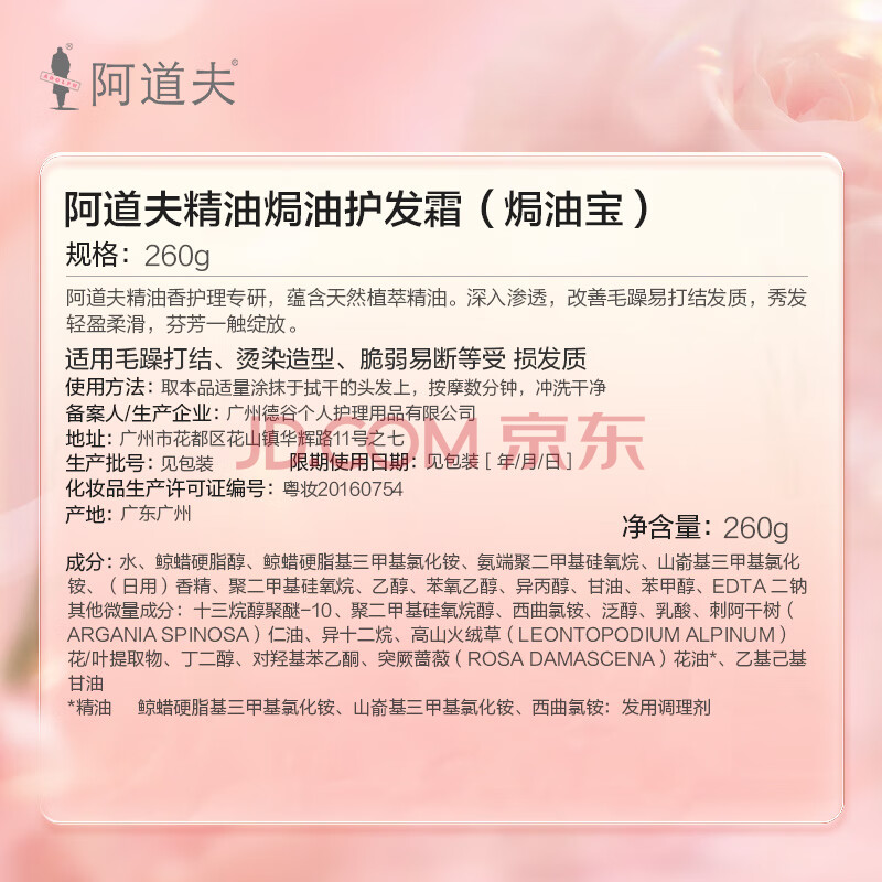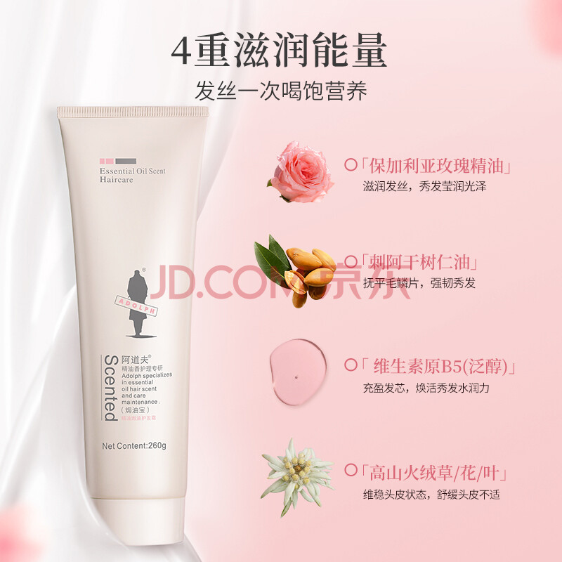 商品相册:阿道夫精油焗油护发膜260g 柔顺干枯毛躁 修护顺滑护发素第