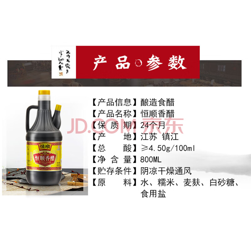 商品相册:恒顺香醋 老B香 4.5度 800ml 糯米酿造炒菜蘸食调味 不添加防腐剂第