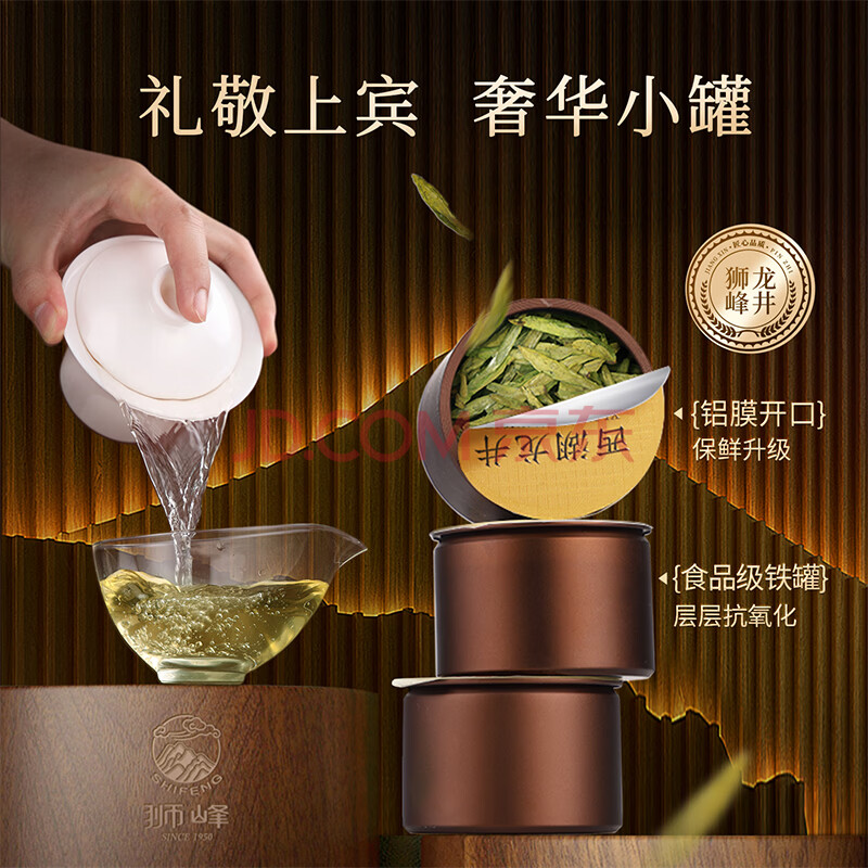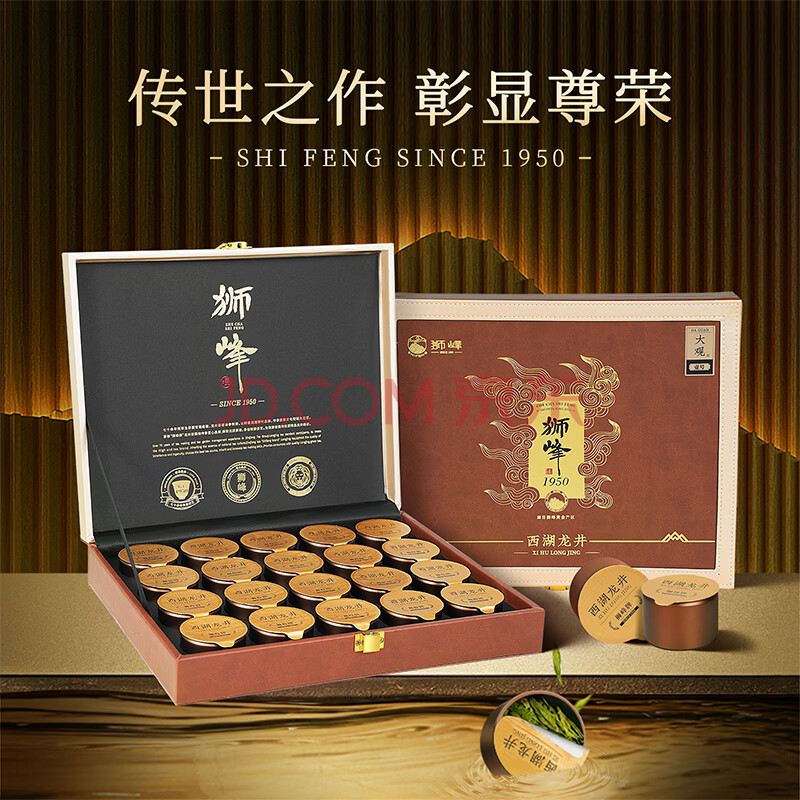 商品相册:狮峰牌2026年新茶上市绿茶西湖龙井茶叶大观1号明前特级精品100g礼盒第
