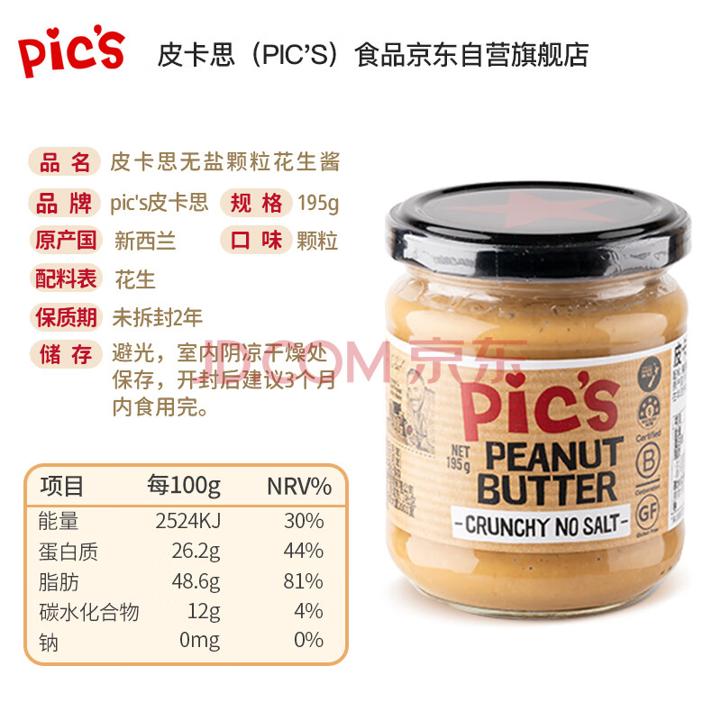 商品相册:皮卡思pics花生酱颗粒不添加盐糖新西兰原装进口火锅蘸料抹面包拌面195g第