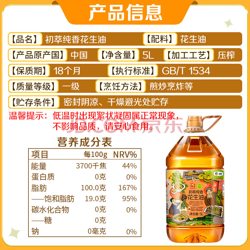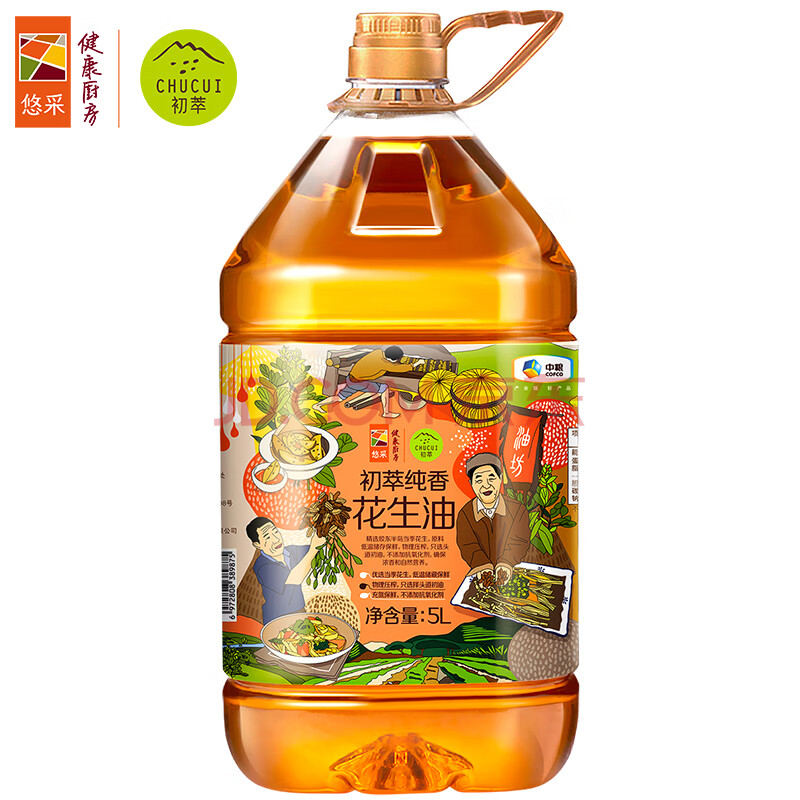 商品相册:初萃【保真花生油】中粮 花生油5L 一级 物理压榨 充氮保鲜 食用油第