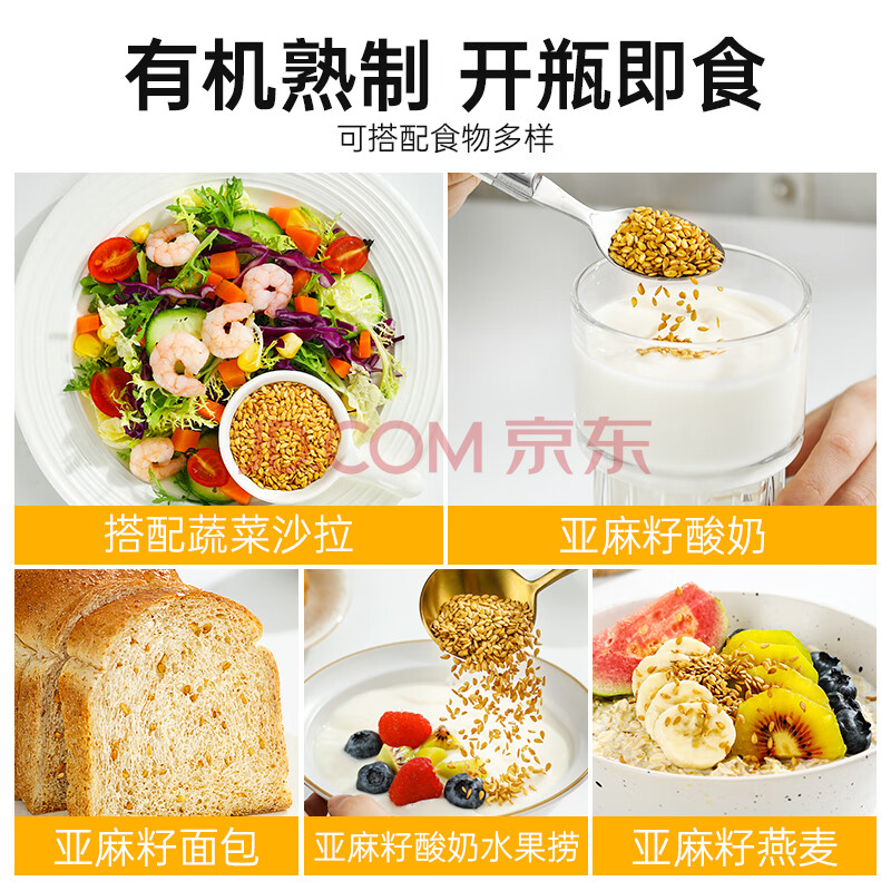 商品相册:璞匠 有机熟亚麻籽低温烘焙补充omega-3 黄金亚麻子即食膳食代餐 480g第