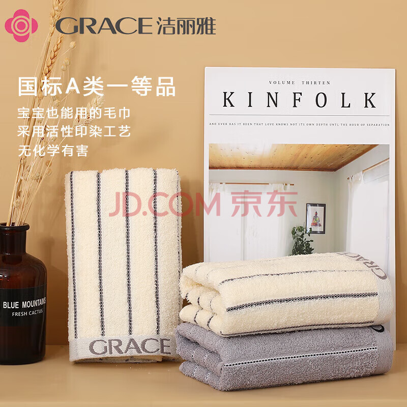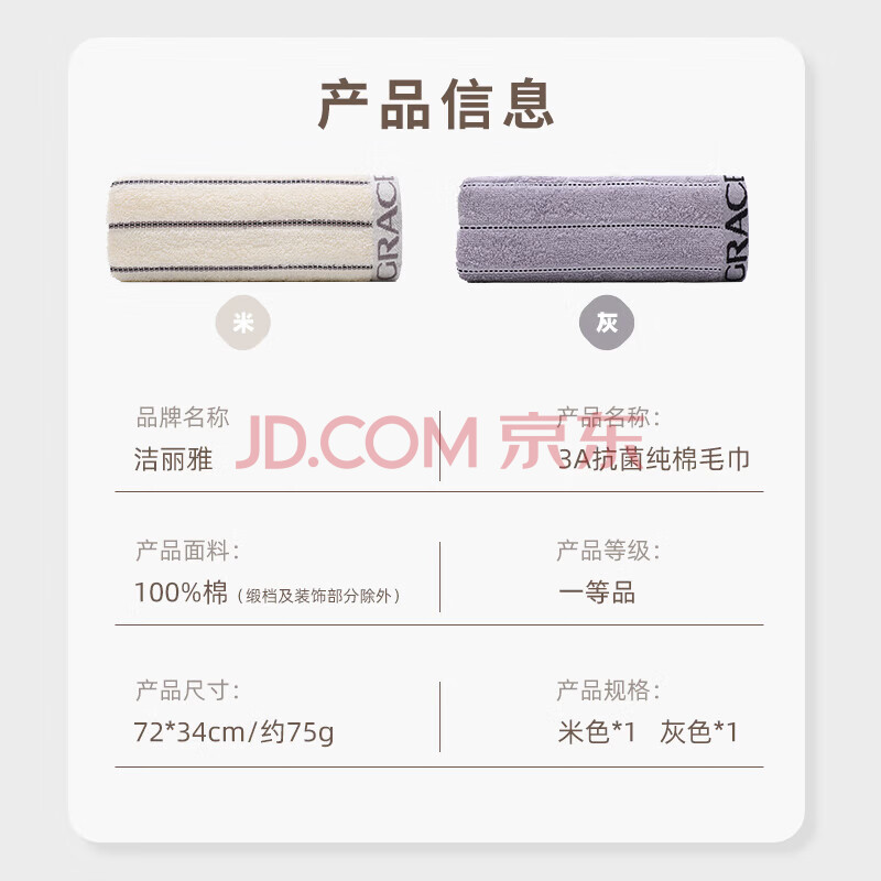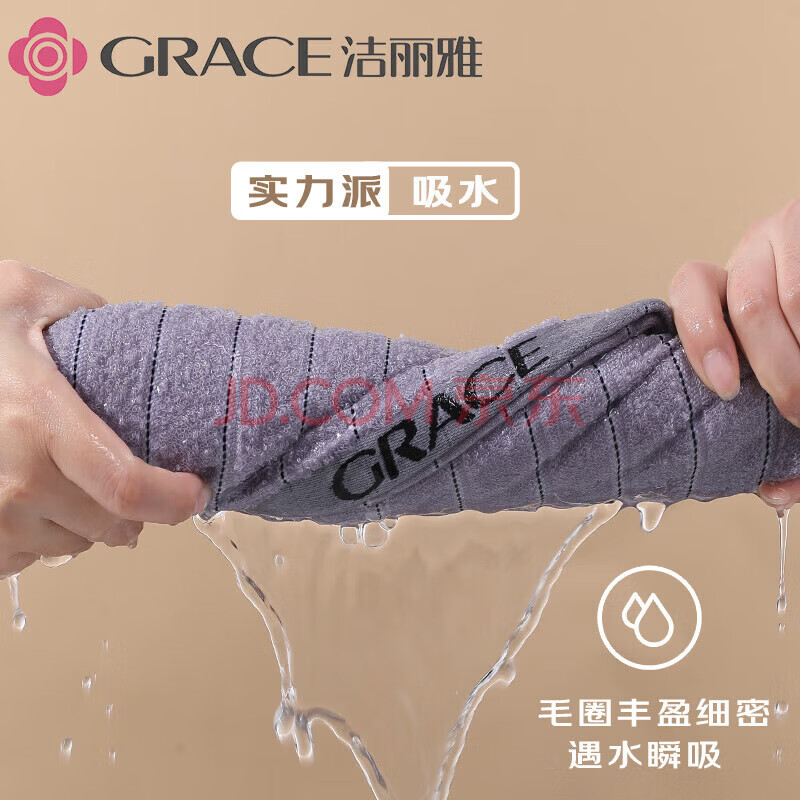 商品相册:洁丽雅(Grace)毛巾纯棉7A抗菌A类男士洗澡成年人新疆长绒棉毛巾 2条装第