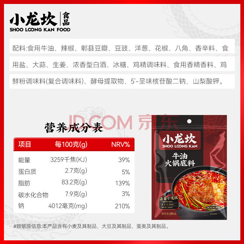 商品相册:小龙坎牛油火锅底料198g/袋 四川重庆特产麻辣烫香锅冒菜串串调味料第