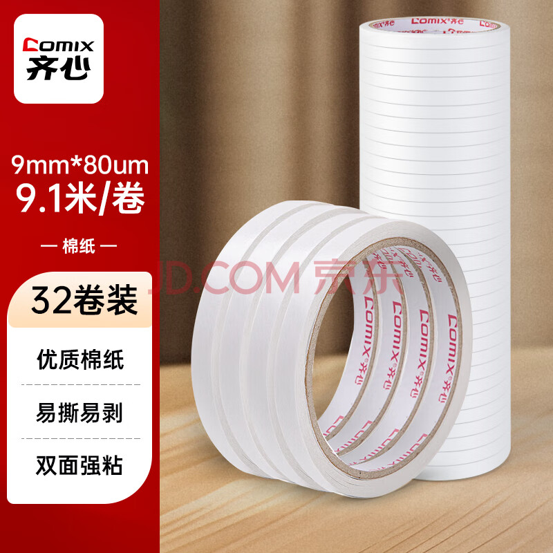 商品相册:齐心(COMIX)高粘泡沫绵双面胶强力高粘度9mm*10y(9.1米/卷)加厚泡沫双面胶强力胶 白色32卷 办公用品 EP009第